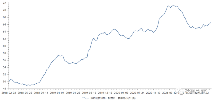 以国内鲜羊肉批发价格为例,2019年11月1日价格为63.03元/公斤,12月27日价格为63.16元/公斤,期间小幅震荡走高。
