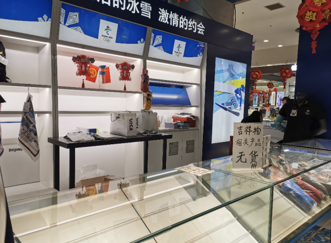而在记者走访的前门、西单商场、北京图书大厦等多家北京2022官方特许商品零售店,由于不少商品已被“扫货”,在售商品并不多。在位于前门的零售店,进门就能看到空空的货架。工作人员表示,“(毛绒玩具)没货了,目前空的地方之前都是(冬奥相关产品),到2月底,会有一些纪念章、徽章,毛绒玩具要到4月(才能到货),此前‘冰墩墩’销售量最多。”