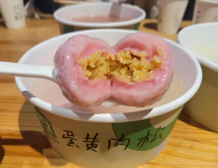 “我最近种草了一款桂花酒酿核桃羹(包馅小圆子)。白嫩小巧的汤圆‘躺’在粉红的桂花核桃羹中,颜值在线,味道也好。”正在购买汤圆的赵小姐告诉记者,她已经将这款汤圆推荐给了自己身边的朋友。“不仅味道好,向煮好的汤圆加入红曲酒酿,还增加了人们制作美食的快感。”她说道。