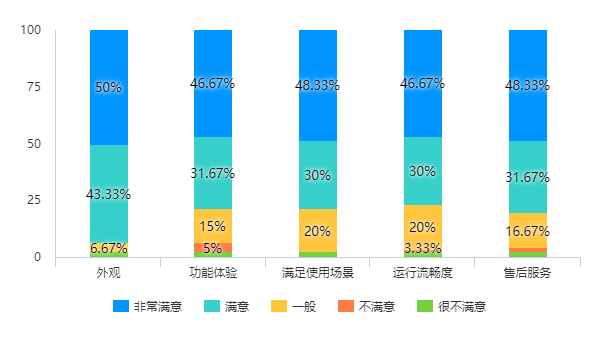只有充分了解用户痛点与用户体验,才能实现产品功能的不断精进与优化。本次调研数据统计显示,针对蓝信的产品外观、功能体验、满足使用场景、运行流畅度、售后服务五个方面的使用评价,接近50%的用户投票“非常满意”,超过30%的用户投票“满意”,这样的一份答卷,既是肯定,更是鞭策,蓝信在新的一年,必将不负您的所托,只为更好地陪伴!