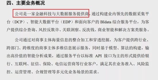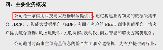 2020年11月18日,在向证监会递交的上会稿中,中数智汇重新描述自己:“公司是一家信用科技与大数据服务提供商......”,还同时表示自己各方面皆符合科创板属性要求。