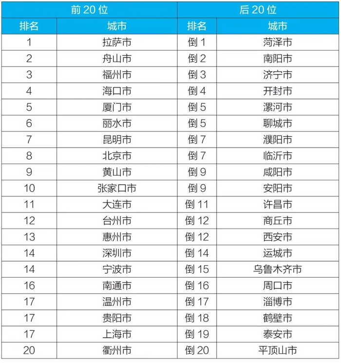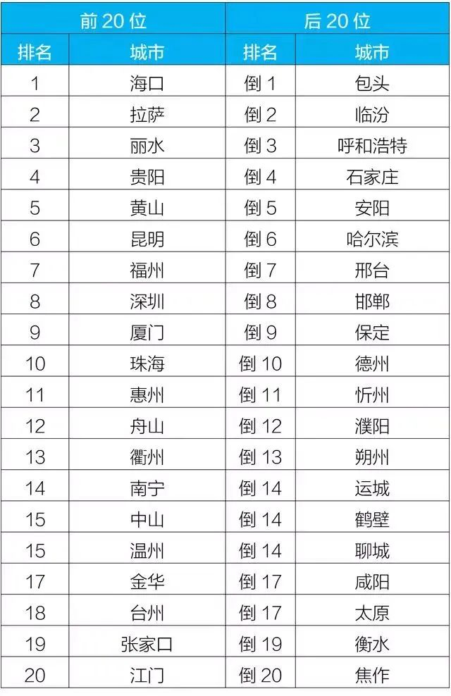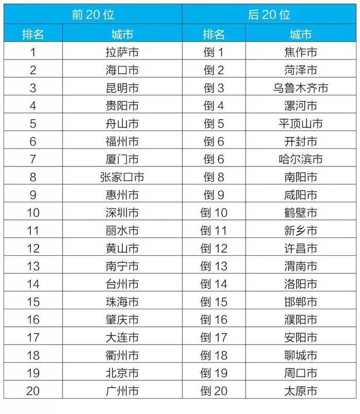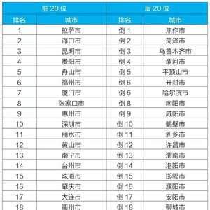 2020年1月168个重点城市排名前20位和后20位城市名单