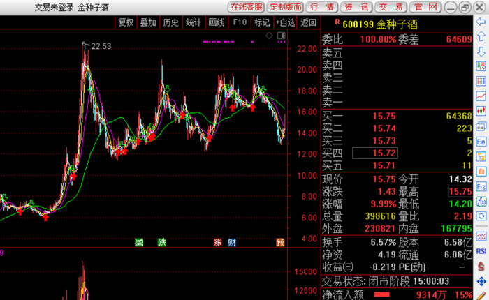 2月16日午后开盘后,金种子酒(600199.SH)股价一路走高,在收盘前巨额买单封死涨停板。