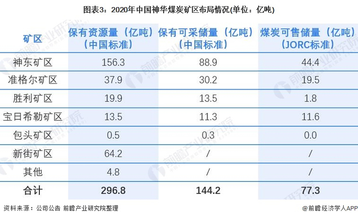 中国神华在全国有神东矿区、准格尔矿区、胜利矿区等多个矿区,主要分布在陕蒙两省,以及两省区交界处。其中,中国神华的神东矿区煤矿资源量(中国标准)最为丰富,2020年达到156.3亿吨。整体来看,中国神华旗下矿区的保有资源量(中国标准)总量达到296.8亿吨,保有可采储量(中国标准)为144.2亿吨,煤炭可售储量(JORC标准)为77.3亿吨。