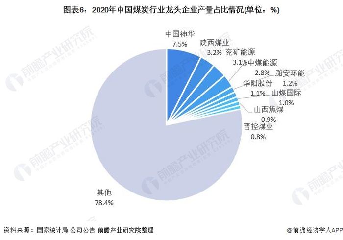 从国内煤炭产量的总体分布来看,2020年中国神华的产量占比达到7.5%,是国内相关上市企业中产量前列的龙头企业。