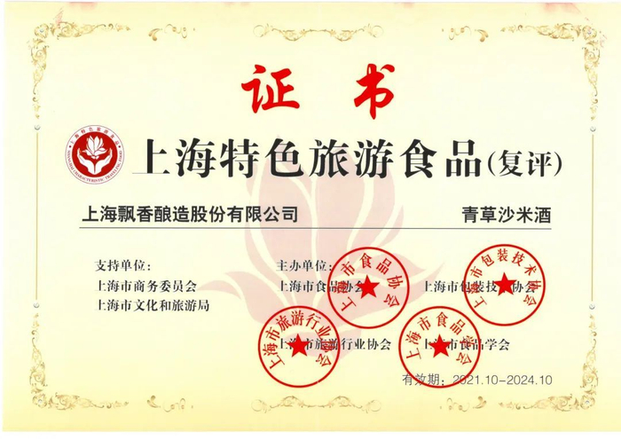 青草沙米酒是第十届中国花卉博览会的特许商品,也参加过第四届进博会。先后被评为“上海特色旅游食品”和“性价比卓越大奖”,米酒产品已向国家知识产权局申请两项发明专利。