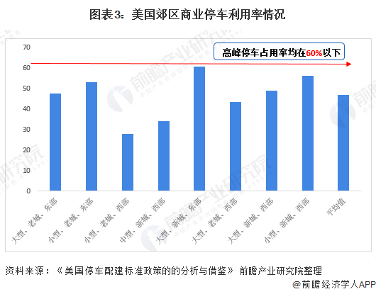 尽管美国是目前全球人均汽车保有量最多的国家,但是目前美国的停车场建设存在使用率不高的问题,停车资源浪费严重,美国停车位数量是机动车保有量的三倍以上。根据《美国停车配建标准政策的的分析与借鉴》数据显示,美国郊区商业停车场建筑面积平均占比高达86%,但是高峰期利用率平均只有46.8%左右。在2019年1月,BBC新闻也发布了一则新闻,报道美国部分群众在城市停车位上摆放桌椅,将停车位当做办公的地方。由此可见,美国停车供过于求。