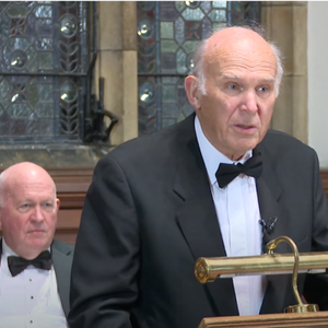 英国前商务大臣兼贸易委员会主席文斯·凯布尔在辩论现场。图源:外媒