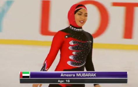 比如这位来自阿联酋裹着头巾上场的选手。
