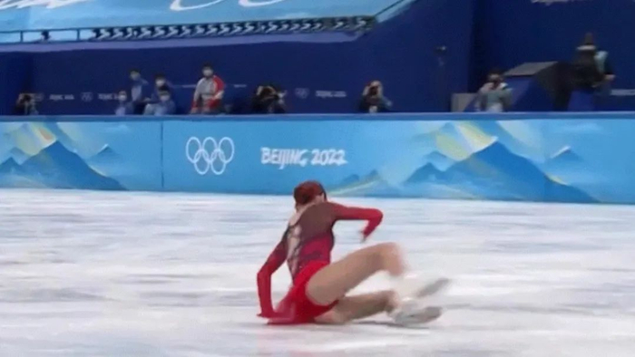 特鲁索娃在3A动作之后不慎摔倒