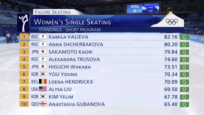 2022北京冬奥会花滑女单短节目最终排名