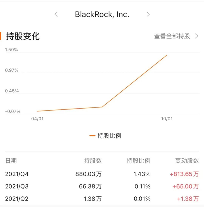 另外,外资巨头贝莱德近三个季度也在大幅加仓海吉亚医疗,光是2021Q4就增持了813.65万股,预估耗资不低于5亿人民币。
