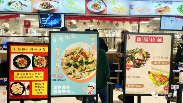 特色面档的浇头种类同样十分丰富。从6元一碗的阳春面,到20元以内的四川担担面、上海辣酱面、本帮酱鸭腿面、台式三杯鸡面,以及特色新品酱爆猪肝面、牛蛙面……近30种面食可选。