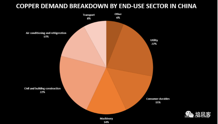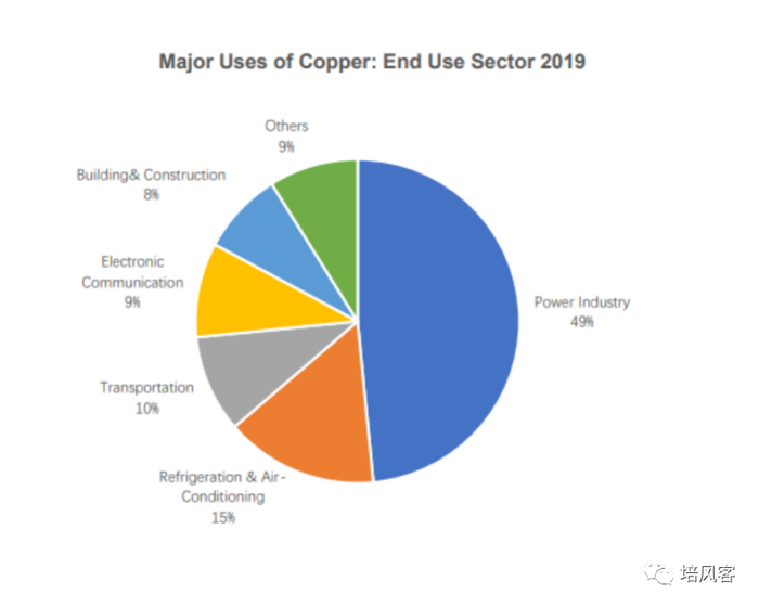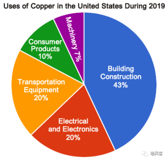 以美国为例子,铜的主要需求是建筑,20%是电力。