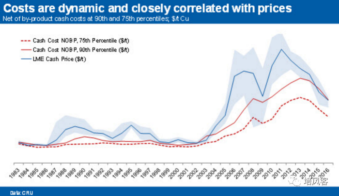 但这个提升本身就是个很有趣的事情。下图展示了自1983年以来铜矿的C1成本变化。
