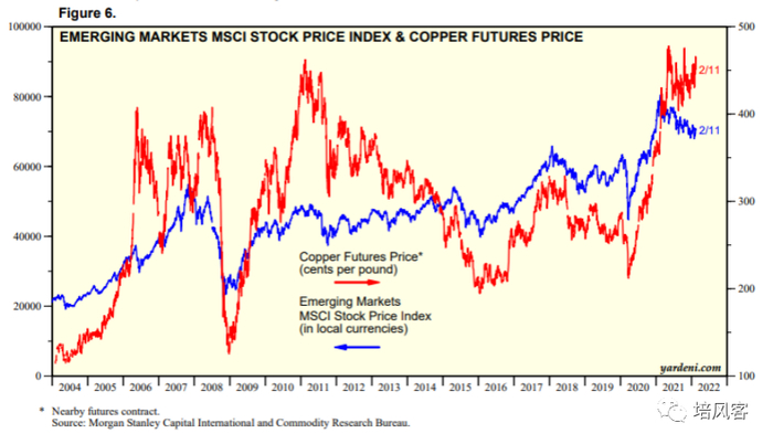MSCI新兴市场和铜价的相关性