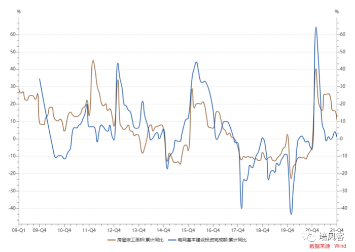 但房地产开工周期要领先房地产竣工周期,所以导致的结果就是电网投资和房地产竣工周期非常一致。