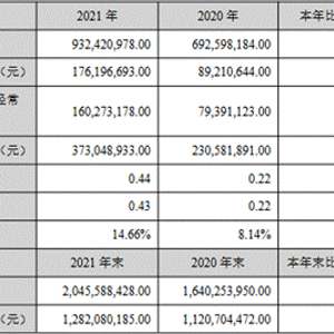 2021年,指南针实现营业收入9.32亿元,同比增长34.63%:实现归属于上市公司股东的净利润1.76亿元,同比增长97.51%;实现归属于上市公司股东的扣除非经常性损益的净利润1.60亿元,同比增长101.88%;经营活动产生的现金流量净额为3.73亿元,同比增长61.79%;基本每股收益为0.44元/股,同比增长100.00%;加权平均净资产收益率为14.66%,较上年同期增加6.52个百分点。