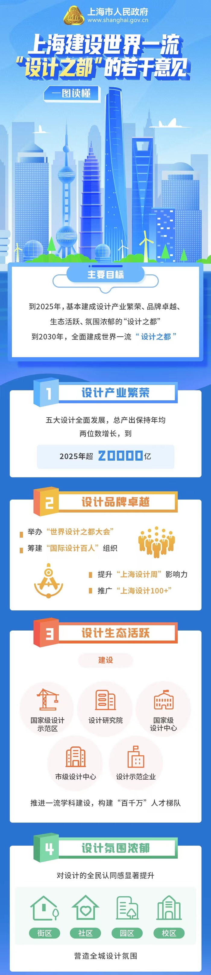 会上,《上海建设世界一流“设计之都”的若干意见》正式发布。根据《若干意见》,到2025年,上海基本建成设计产业繁荣、品牌卓越、生态活跃、氛围浓郁的“设计之都”。到2030年,进一步提升国际竞争力和美誉度,全面建成世界一流“设计之都”。