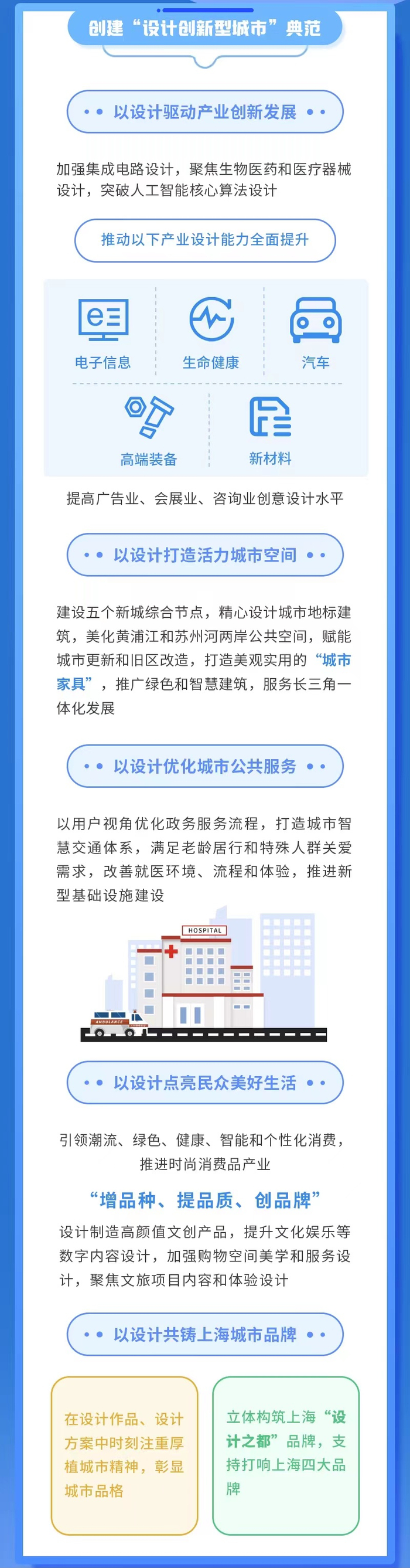 2月17日,上海建设世界一流“设计之都”推进大会在友谊会堂召开。会上,上海市经信委主任吴金城解读《上海建设世界一流“设计之都”的若干意见》,阐述世界一流建设目标:到2025年,上海创意和设计产业总产出将超2万亿元,基本建成设计产业繁荣、品牌卓越、生态活跃、氛围浓郁的“设计之都”。