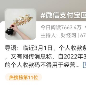 据媒体报道,近期有网传消息称,自2022年3月1日起,微信、支付宝的个人收款码不得用于经营性收款。不仅如此,近4年的数据将被追查,一旦数额较大需按4.5%补税,还要缴纳滞纳金和罚款。对此,微信和支付宝回应称,追查个人收款码近4年数据的说法为谣言。