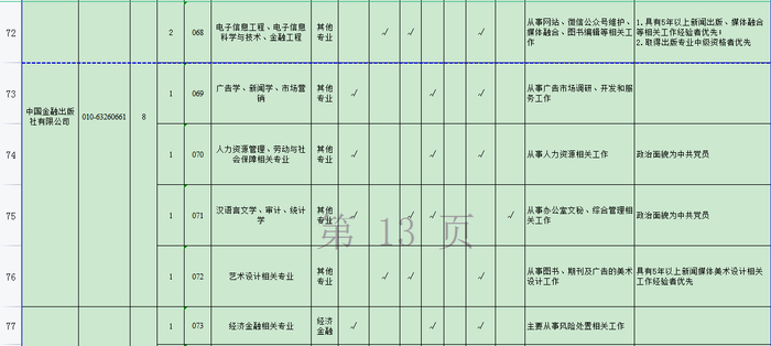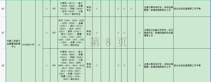 部分所属单位工作人员招聘专业及职位需求详见《中国人民银行部分所属单位2022年度公开招聘职位需求信息表》。