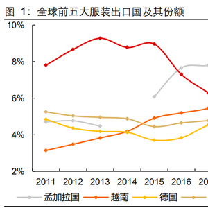 2015-2019 年:伴随中国生产要素成本优势减弱,中国纺服产业链迁出呈结构性分化。即下游(成品)迁出比例较高,中游(中间品)受上游(设备/原材料)影响有 所分化。具体来看,上游:化纤及纺织为资本密集型行业,设备优势较强、迁出比 例低,超 60%品类出口比重高且产业链完整性排名靠前。天然纤维竞争优势不明 显,且持续迁出;中游:受上游材料影响有所分化,化纤中间品较天然纤维中间品 具有更大的竞争优势,迁出比例相对较低;下游:劳动力密集型的成衣制造迁出比 例高。按 HS 分类,2015-2019 年纺织品/服装/家纺出口贸易比重分别变动+2.3/- 7.9/-0.6pct,纺织服装贸易路径逐步由“纺织品(中国)-服装(中国)-品牌商(美 日欧等)”向“纺织品(中国)-服装(中国/东南亚等)-品牌商(美日欧等)”过渡, 以越南为代表的东南亚国家,基于劳动力成本优势和政策红利吸引服装产能转移。