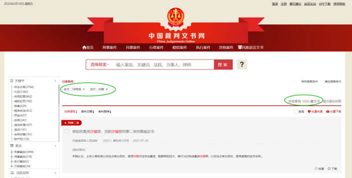 同时搜索“58同城”“诈骗”等关键词,与之相关的裁判文书达3886条。