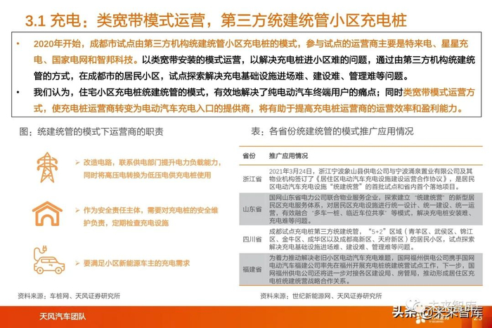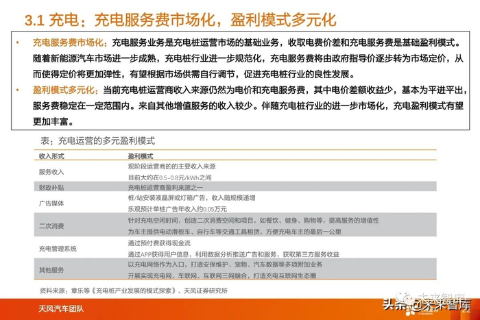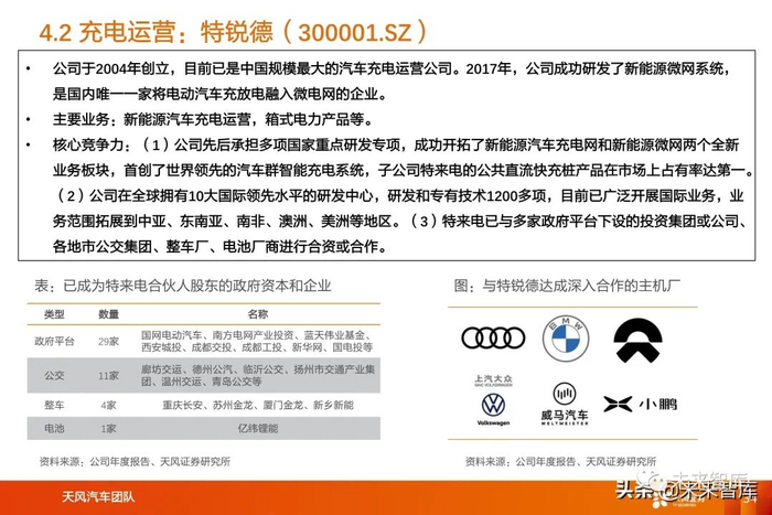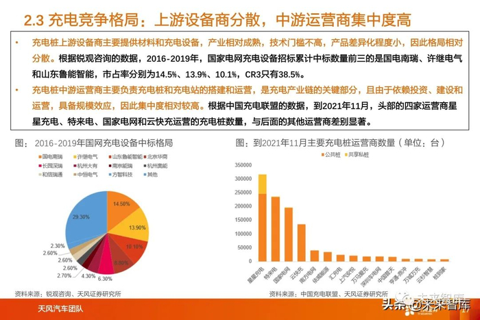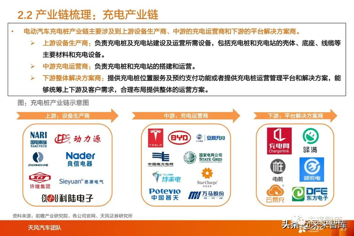 下游整体解决方案商:提供充电桩位置服务及预约支付功能或者提供充电桩运营管理平台和解决方案,能 够统筹上下游及客户需求,合理布局提供整体的运营方案。(报告来源:未来智库)
