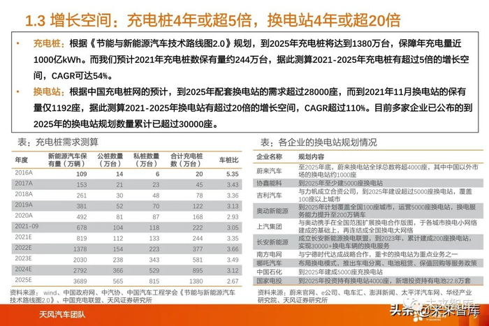 1.3 增长空间:充电桩4年或超5倍,换电站4年或超20倍