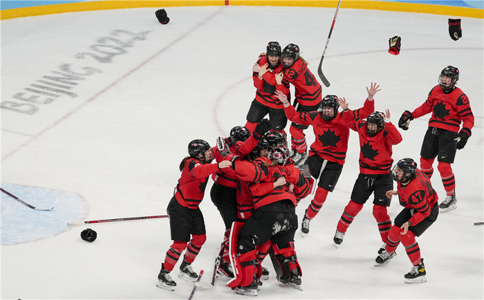 2月17日,北京冬奥会女子冰球金牌赛中,加拿大队3∶2战胜美国队,获得冠军。