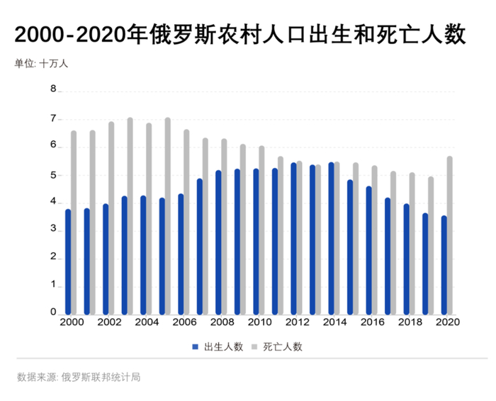 俄罗斯农村人口的总体趋势与城市人口相似。