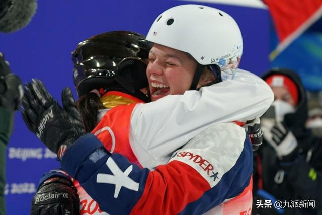 徐梦桃夺冠后,美国选手阿什利·考德威尔给了她一个大大的拥抱。