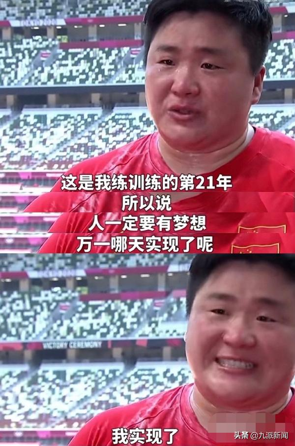 巩立姣夺冠后接受采访。