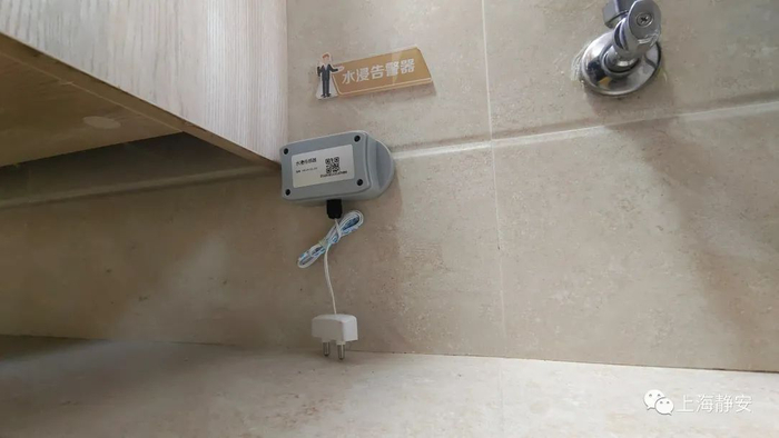 卫生间里配有“水浸告警器”,这个安置在墙根处的告警器有一个延伸至地面的探头,当探头感知到卫生间地面出现积水并持续一定时间后,便会将情况通知到后台和紧急联络人处,用以应对下水堵塞、忘关水龙头等意外事件。
