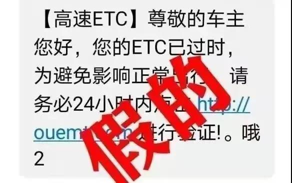 短信内容会提及:“ETC过期认证、失效激活”或者“医保停用、失效”等信息,并附带网页链接,诱骗事主点击链接,在网上“认证激活”。