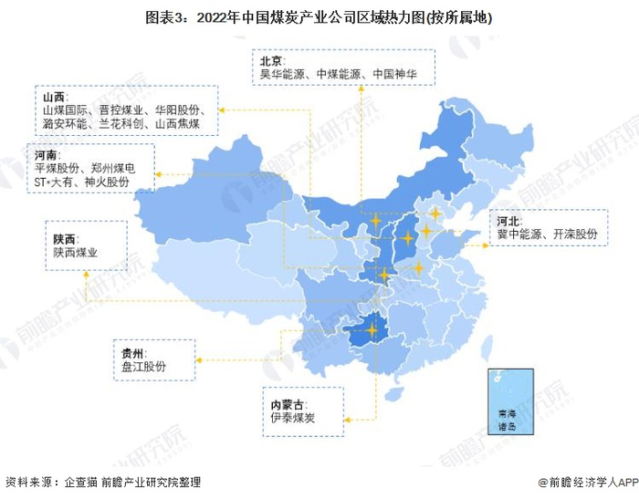 从上市公司的区域分布来看,企业的分布数量基本与我国煤矿资源的分布一致,以贵州、内蒙古、山西、陕西等地区企业数量为最。从上市企业情况来看,山西省的上市企业数量相对较多,有山煤国际(600546)、晋控煤业(601001)、华阳股份(600348)、潞安环能(601699)、兰花科创(600123)、山西焦煤(000983)等上市企业;北京含有昊华能源(601101)、中煤能源(601898)、中国神华(601088)等龙头上市企业。