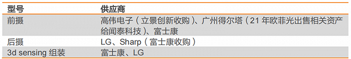 相比于COB 封装,FC 封装基片到底座之间路径最短,为高速信号提供良好的传输途径,同时由于不使用引线框架或塑料管,重量和尺寸也有所减小,为高端手机摄像头封装工艺首选。主流安卓机型摄像头模组采用 COB 封装,苹果从 iPhone 5 开始采用 FC 工艺封装摄像头,是唯一使用该技术封装摄像头的手机厂商。立景创新通过收购高伟电子掌握 FC 封装工艺,有助于进一步提升光学模组环节能力。