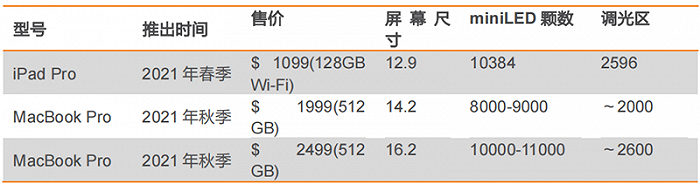 切入 miniLED SMT 领域。苹果目前推出了三款搭载 miniLED 显示屏的产品,分别是 2021年春季发布的 iPad Pro 和 2021 年秋季发布的 14.2 寸和 16.2 寸 MacBook pro。miniLED 生产需要经历—过程。苹果采用 SMT 制程进行 miniLED 芯片的转移。2021 年春季发布的 iPadPro 中台表科技为 miniLED SMT 独供。
