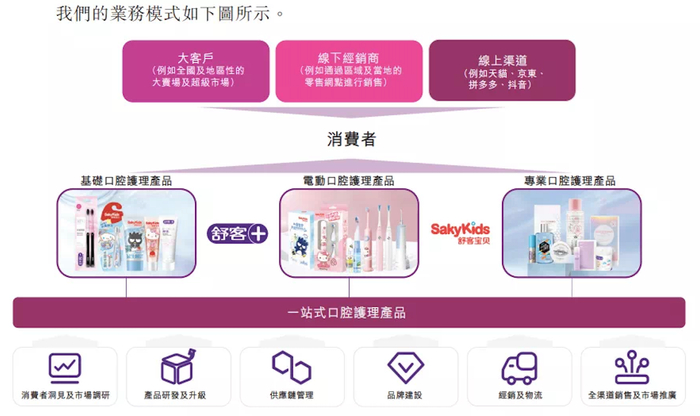 舒客还覆盖其他口腔护理产品。2015年,舒客推出首款早晚分护声波电动牙刷;2016年,舒客联合今日头条共同发布《2016中国口腔健康趋势白皮书》,推出旗下首款蓝牙声波牙刷—G2S;2019年,舒客上线Saky Pro声波电动牙刷,并推出与Hello Kitty等IP联名的儿童电动牙刷。