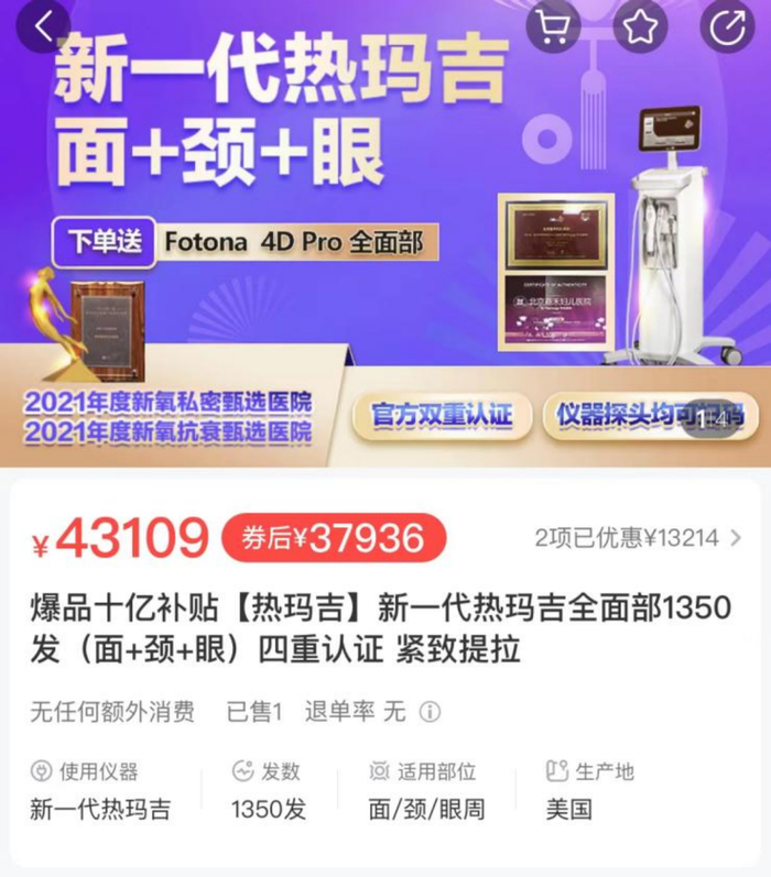 而提到热玛吉,不少女生的第一感受是——贵。打开某医美整形平台,热玛吉的价格普遍是万元起步,随着项目的增加,做一次热玛吉的套餐价格高达5万也不在少数。