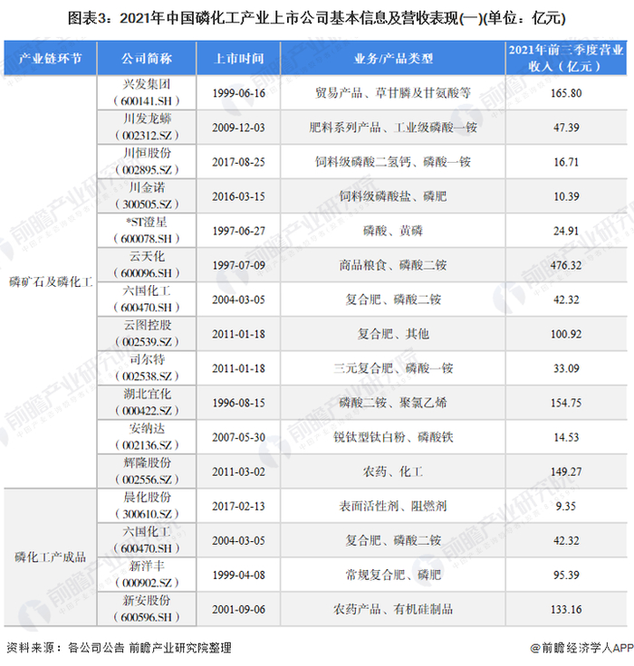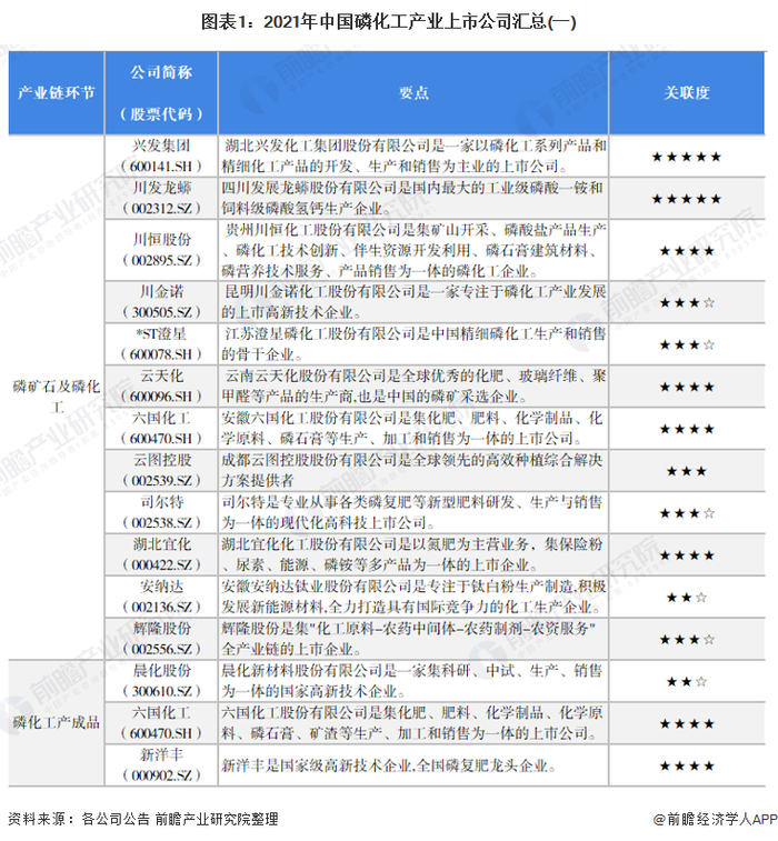1、磷化工产业上市公司汇总