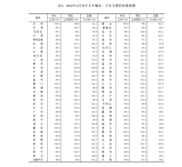 国家统计局21日发布2022年1月70个大中城市商品住宅销售价格变动情况的统计数据。数据显示,2022年1月份,全国房价环比涨幅总体延续去年四季度以来的下降态势,但降幅减少,同比涨幅回落;房价下跌城市数连续两个月回调,但仍超过半数。