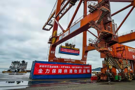 按照党中央、国务院和广东省委省政府的部署,深圳市委市政府积极组织调动各方力量,与港方加强联动,全面统筹调度货源、运力,优化通关流程,提升通关效率,采用多种方式提高供港物资供应能力,全力保障对港物资供应。深圳市交通运输局牵头制定了深港跨境运输深圳港水路运输保障工作方案,迅速组织调动盐田国际、大铲湾、招商港口企业保障运力;在广东省交通运输厅、商务厅及海关总署广东分署、深圳海关、深圳边检等部门的全力支持下,设置专用泊位、闸口等绿色通道,压缩中间环节和时间成本,创新监管模式,到港即可作业,实现了供港蔬菜“零等待”快速通关,满足每日供港鲜活商品“次晨达”的时效要求,全力保障香港同胞生活物资供应。