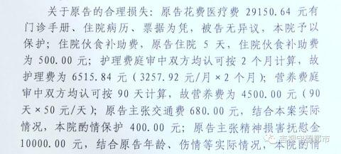 在庭审过程中,绿园法院在对原告马同学的损失认定过程中,医药费方面以医院的病例、票据等实际支出为准,而住院伙食费、护理费、营养费则按照合理费用计算。