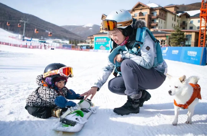 据范雪吟介绍,在崇礼的时候,不管天多冷,他们每天上下午都会带着贝贝各进行1到2小时的户外活动,“一开始会带贝贝在雪场里溜达,有时候她会自己趴在雪地上玩,等到她会滑雪的时候,再带着她上雪道滑个把小时”。