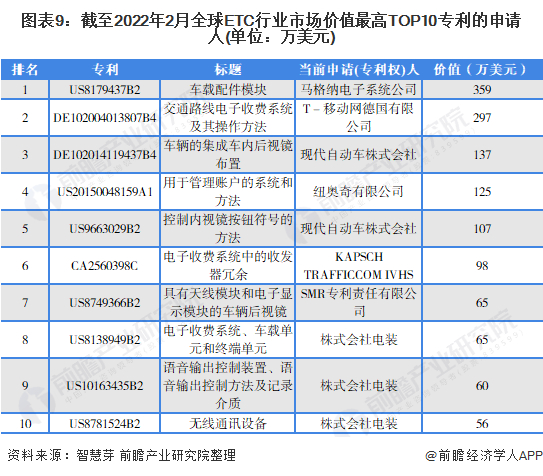 收藏!2022年全球ETC行业技术竞争格局(附区域申请分布、申请人排名、专利申请集中度等)