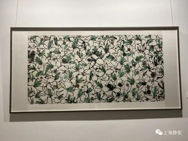 在作品《见喜》的对面,陈列的是艺术家张雷平的纸本水墨作品《盛开的白玉兰》:朵朵娇嫩的白玉兰好似在风中摇曳,有的倒挂枝头,有的斜插枝头……