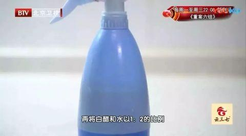 3、将白醋和水以1:2的比例调配好装入喷壶中,喷在案板表面。