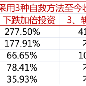 3、斩仓补仓法:在市场回撤20%后,全部赎回并开启“下跌加倍定投”,按原始资金的1/10,随后每下跌10%,在上一次金额的基础上翻倍追加投资。